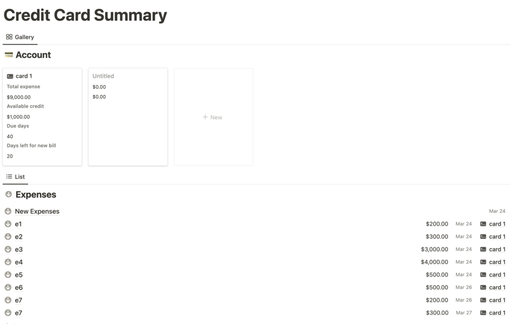you'll get a notion template which will tell you your total expenses, available credit, days left in new bill generation, due days at one glance